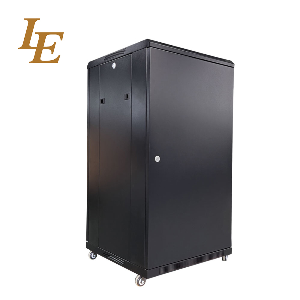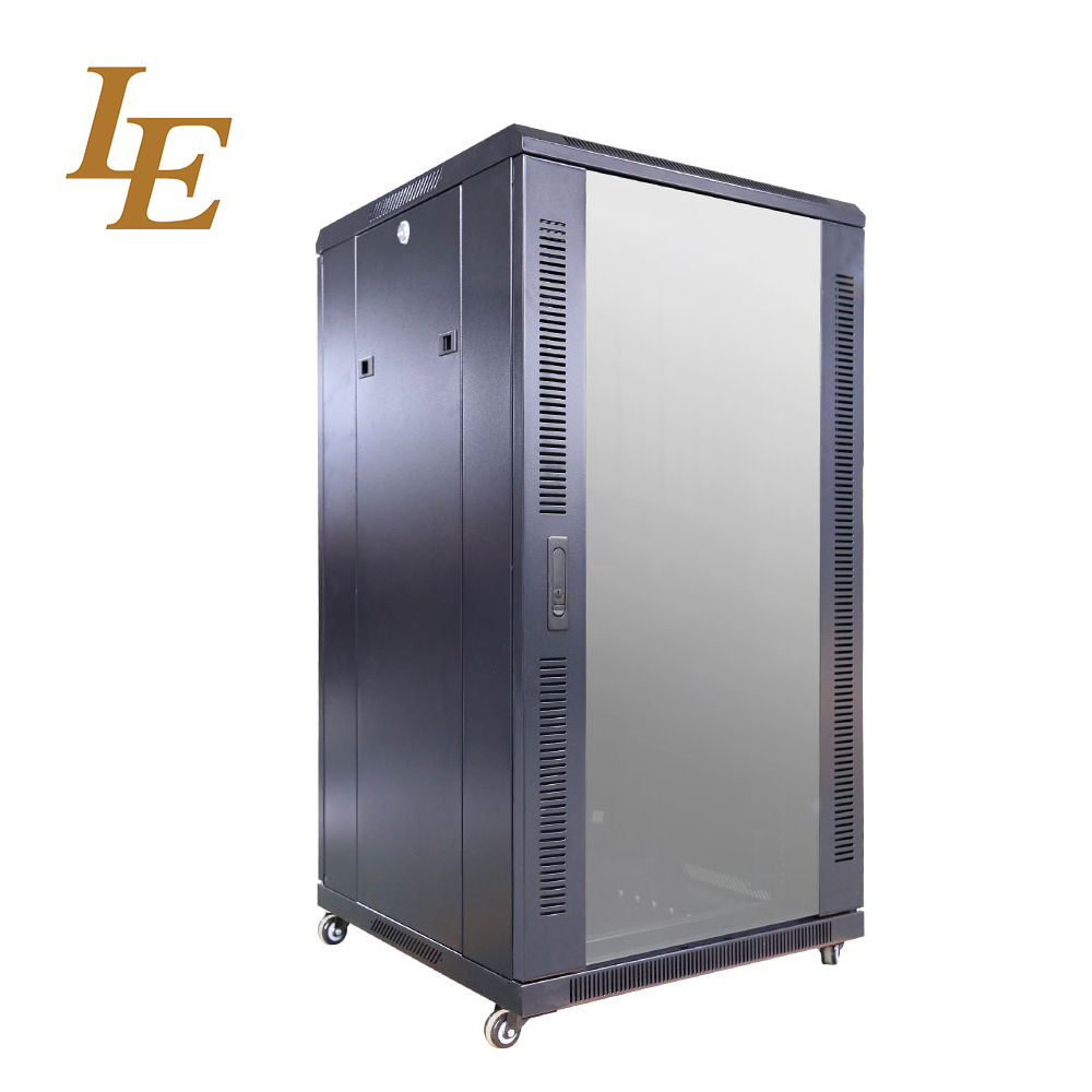 19 ίντσες 18U 800mm πλάτος 22U 600mm πλάτος Επικρατευτικό γυαλί μπροστινή πόρτα και στερεό μέταλλο πίσω πόρτα με λαβή κλειδαριές ράφια RAL9004 Μαύρο RAL9005 Μαύρο επίπεδο συσκευασία